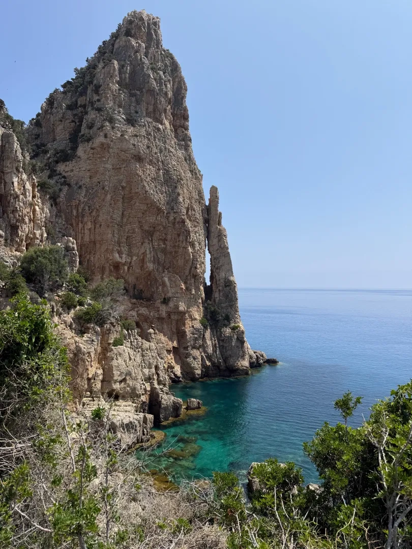 Doch die Begeisterung sollte noch weiter gesteigert werden. Am Donnerstag fuhren wir in Richtung Pedra Longa. Ebenfalls Felsen die sich aus dem Wasser erheben, doch ganz anders als in Arbatax ist es hier helles Gestein, bewachsen mit Büschen und Bäumen, über karibisch weißem Strand thronend. Nachdem wir jeden denkbaren Fotospot auskundschaftet hatten, uns köstlich über Ziegen auf Picknicktischen amüsiert haben und uns einfach nicht an der Landschaft sattsehen konnten, kehrten wir in das hübsche Lokal Trattoria Pedra Longa ein. Bei all der Hitze hatten wir eine Erfrischung dringend nötig.