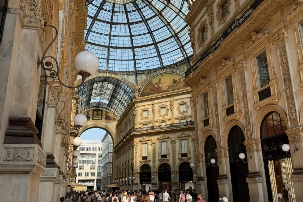 Am Sonntag Morgen, es war der 8. Juni 2025 um 6:44 Uhr, wurden die Motoren gestartet und die Reise begann. Das erste Etappenziel war die Modemetropole Mailand. Vor einigen Jahren legten Birgit, Mila und ich mal einen kurzen Zwischenstopp für wenige Stunden in Mailand ein. Diese Erfahrung machte deutlich, dass wir hier noch einmal hin möchten. Dazu kam, dass Sven die Stadt ebenfalls noch nicht gesehen hatte – abgesehen von einem Messeaufenthalt, doch wie das so ist, wenn man beruflich in einer fremden Stadt ist, zu sehen bekommt man viel zu wenig.